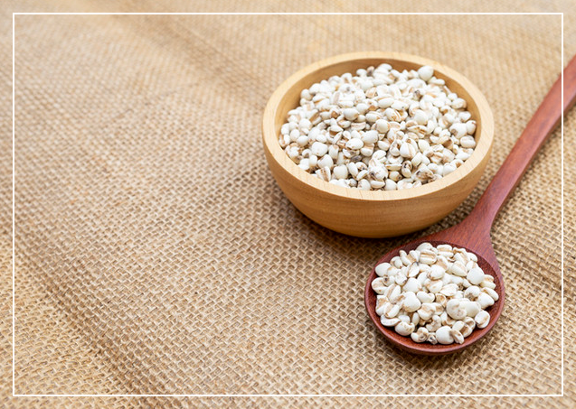 율무에는 코익세노라이드라는 특별한 성분이 들어있는데요, 이 성분이 각질 세포의 재생을 촉진해서 각질로 인한 피부 문제를 예방하고 완화시켜준답니다. 또한 유기 게르마늄 성분도 함유되어 있어서 세포의 대사를 도와주고 피부 턴오버를 촉진하는 효과가 있어요.