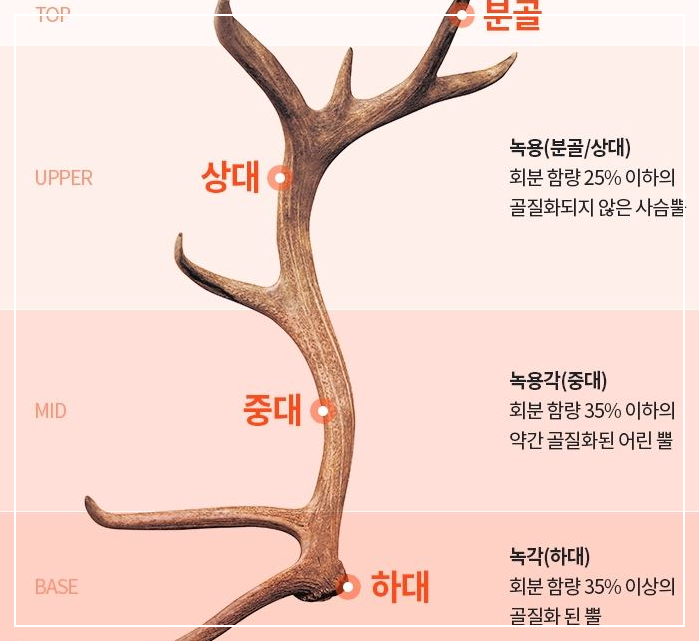 녹용은 사슴의 뿔이 골화되기 전 어린 단계의 뿔을 말하는데요, 17종의 아미노산과 13종의 무기질, 갱글리오사이드 같은 특별한 성분들이 풍부하게 들어있어요.