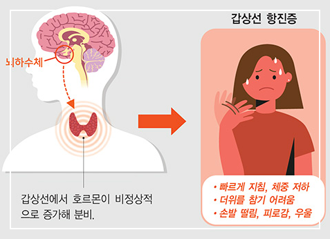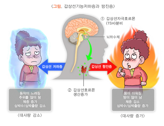특히 밤에 잠들 때 숨이 막히는 듯한 느낌이 든다면 갑상선 이상을 의심해볼 필요가 있어요.