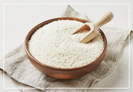 예로부터 찹쌀가루로 팩을 만들어 얼굴에 바르면 각질 관리와 미백 효과를 볼 수 있다고 전해져 내려오죠. 찹쌀을 섭취하거나 피부에 직접 바르면 피부층이 개선되고 보습 효과도 있어서 건조한 피부를 촉촉하게 만들어준답니다.