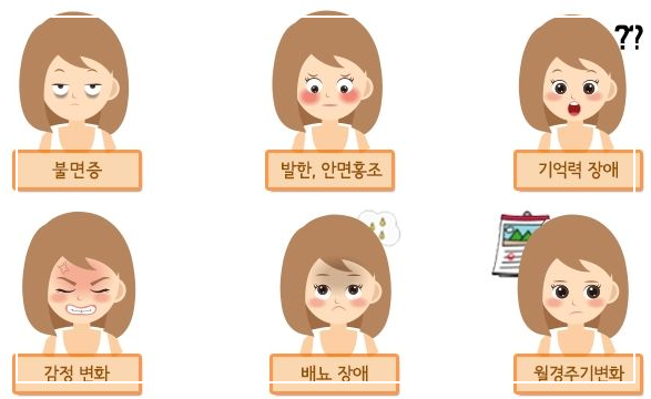 그래서 갱년기에 에스트로겐이 부족해지면서 나타나는 여러 증상들을 완화시켜주는 효과가 있어요. 안면홍조, 불면증, 우울감 같은 갱년기 증상들이 개선될 수 있죠.