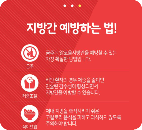 술을 완전히 끊기 어려우시다면 천천히 줄이는 것부터 시작하세요. 음주량을 줄이면 간 손상도 감소한답니다. 금주는 금연만큼 어려우니 환자 본인의 의지와 함께 가족과 의료진의 협조와 지지가 필요해요. 간의 부담을 덜어주기 위해 음주를 제한하는 노력을 꼭 해보세요.
