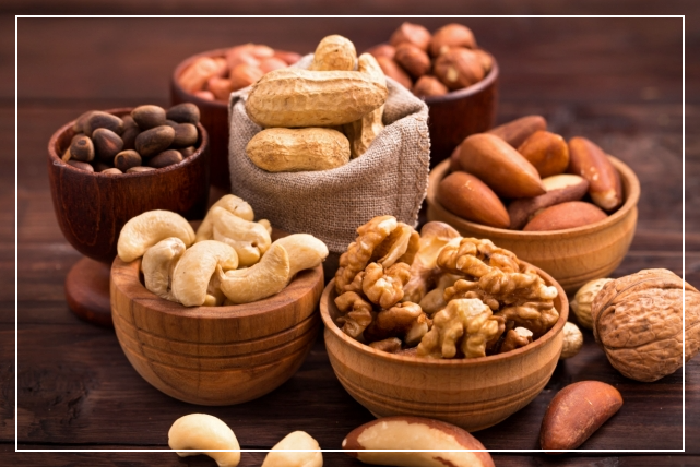 호두, 아몬드, 피스타치오, 땅콩 같은 견과류에는 항염 효과가 있는 오메가-3 지방산이 풍부하답니다. 또한 마그네슘, L-아르기닌, 비타민E 같은 영양소도 듬뿍 들어있어요. 비타민E는 관절을 매끄럽게 하고 염증 전구체로부터 우리 몸을 보호해준답니다.