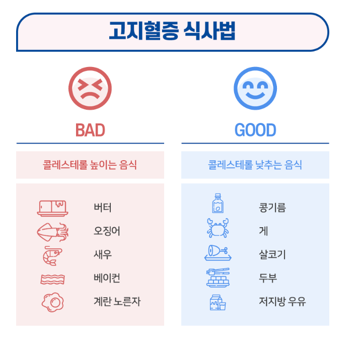 고지혈증을 예방하려면 무엇보다 규칙적인 식습관이 중요해요. 포화지방이 많은 고기의 기름기와 껍질은 제거하고 살코기 위주로 드시고, 제철 채소와 신선한 과일을 충분히 섭취하세요.