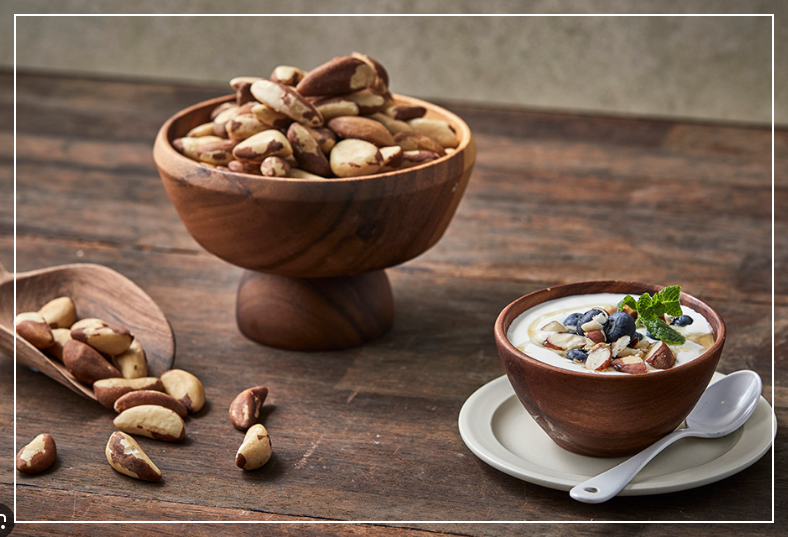 브라질너트에는 필수 아미노산이 풍부해서 근육과 뼈 건강에 매우 좋아요. 고기나 생선만큼 양질의 단백질을 포함하고 있어서 운동 전에 섭취하면 근력 저하와 근육 손상을 억제하는 효과를 기대할 수 있답니다.