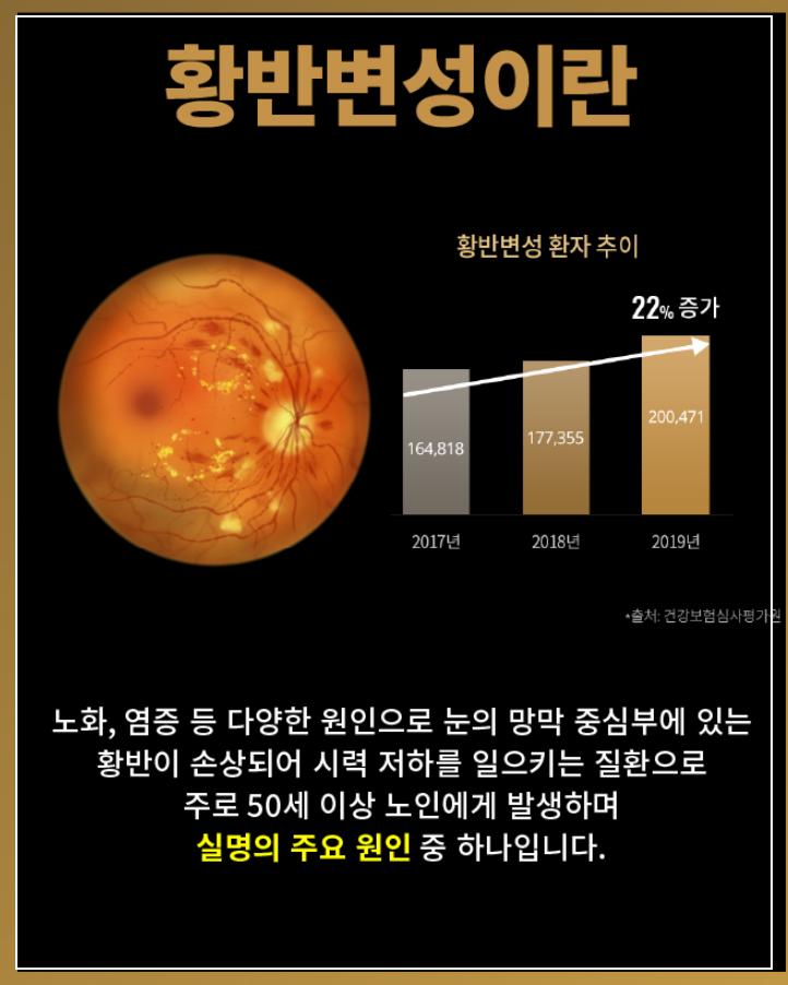 황반은 우리 눈에서 시력 기능의 90% 이상을 담당하는 정말 중요한 부위인데요, 이 황반에는 황반색소가 존재해서 빛으로부터 망막을 보호하는 역할을 해요. 그런데 나이가 들면서 황반색소 밀도가 점점 줄어들어 50-60대가 되면 20-30대의 절반 수준으로 감소하게 된답니다.