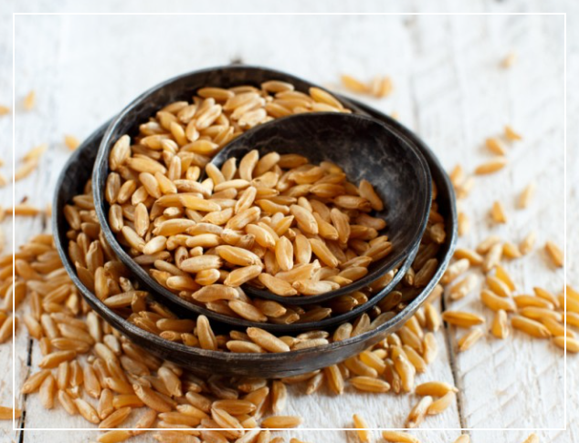 일반 밀보다 2~3배 큰 알갱이에 진한 황금빛을 띠는 카무트는 현미보다 3배 이상 많은 식이섬유와 달걀 대비 250%나 많은 셀레늄을 함유하고 있답니다.