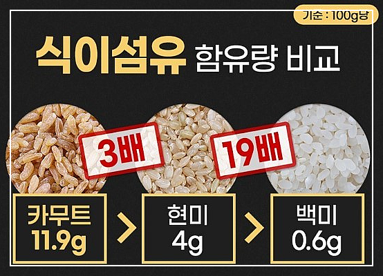 심혈관 질환이 걱정되시는 분들에게 카무트는 정말 훌륭한 식품이에요. 카무트에는 현미의 3배 이상이나 되는 풍부한 식이섬유가 들어있어서 체내 나쁜 콜레스테롤(LDL)을 흡수하고 배출하는 데 탁월한 효과가 있거든요.