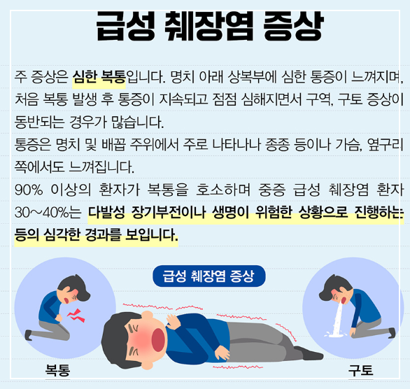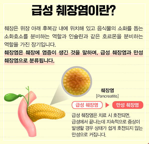 특히 급성 췌장염의 경우 갑자기 심한 통증이 찾아오기 때문에 응급실을 찾게 되는 경우가 많답니다. 만성 췌장염은 서서히 진행되면서 소화 기능에 문제를 일으키죠.