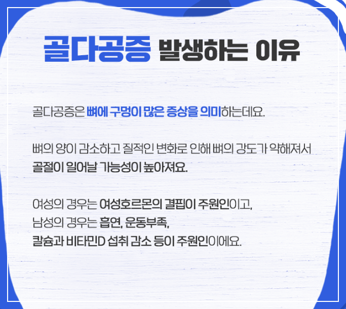 나이가 들면 자연스럽게 골밀도가 낮아지고 골다공증 위험이 높아지는데요, 홍합은 뼈 건강을 지키는 데도 아주 좋은 식품이에요. 홍합에는 칼슘이 100g당 43mg, 인 성분이 239mg이나 들어있어서 뼈와 치아를 튼튼하게 만들어준답니다.