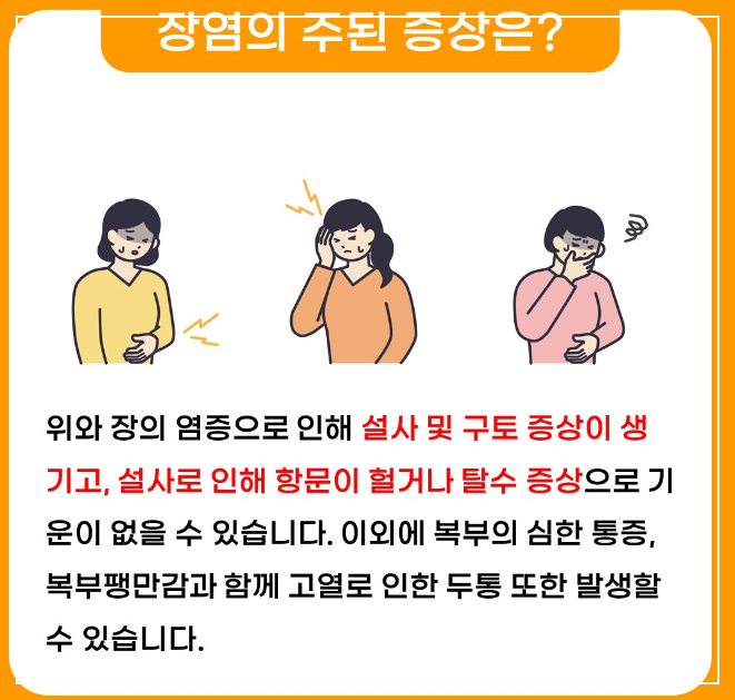 장염 증상에 대해 알아보겠습니다. 요즘 날씨가 변덕스럽거나 외식을 자주 하다 보면 갑자기 배가 아프고 화장실을 들락날락하게 되는 경험, 한 번쯤은 다들 있으시죠? 장염은 바이러스나 세균, 또는 상한 음식 때문에 우리 장에 염증이 생기는 질환인데요.