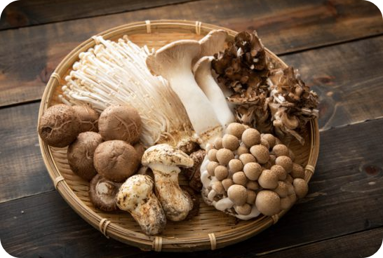 버섯은 무기질과 비타민이 채소와 과일만큼 풍부한 식품으로 고단백 저칼로리이면서 비타민 D와 엽산이 풍부하게 함유되어 있어요. 특히 느타리버섯과 송이버섯은 다른 버섯에 비해 엽산이 더 풍부한 것으로 알려져 있답니다.