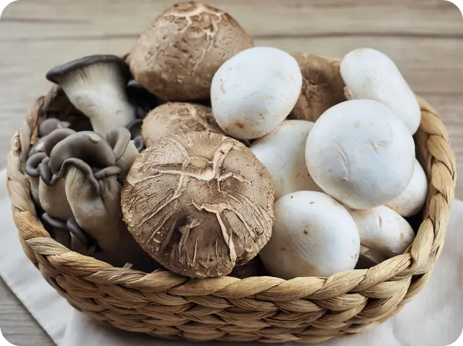버섯에 들어있는 엽산은 우울증 완화에 도움을 주며, 스트레스 호르몬 조절에도 긍정적인 효과가 있어요. 팽이버섯에는 내장지방을 연소시키는 리놀산이 풍부하고, 새송이버섯은 느타리버섯이나 팽이버섯보다 비타민 C 함량이 많답니다.