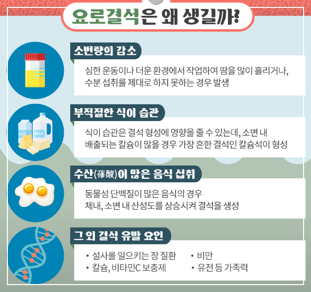 특히 여름철이나 운동 후에는 땀으로 수분이 많이 빠져나가니 더욱 신경 써서 물을 마셔야 해요. 정기적인 검사와 건강한 식습관으로 요로결석을 충분히 예방할 수 있답니다!