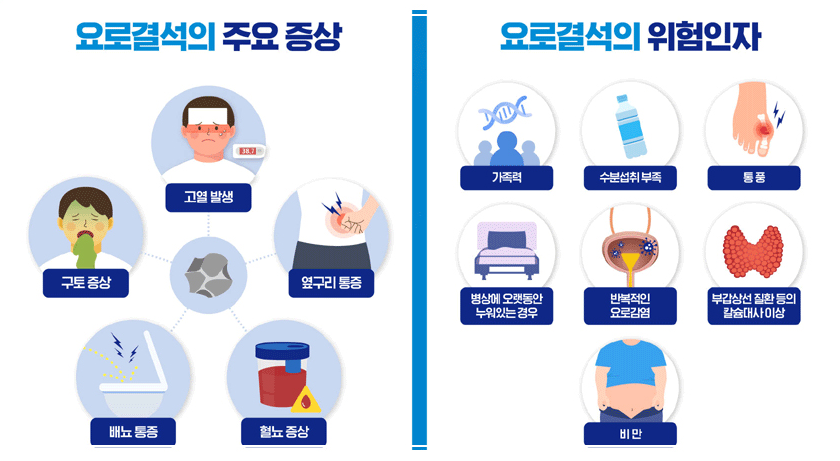 요로결석 증상에 대해 자세하게 알아보겠습니다. 요로결석은 소변이 지나가는 길인 신장, 요관, 방광 등에 돌처럼 단단한 결석이 생기는 질환인데요. 특히 여름철이나 수분 섭취가 부족한 겨울철에 더 많이 발생하고, 남성이 여성보다 약 2배 정도 더 잘 걸린다고 해요.