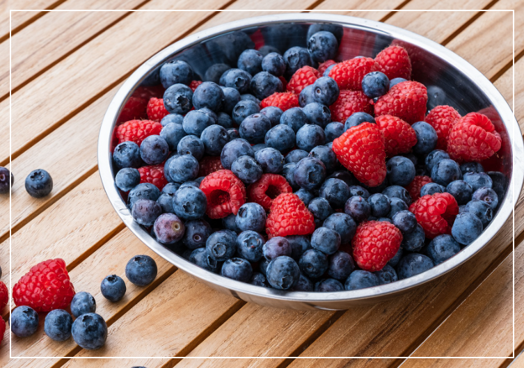 블루베리, 딸기, 블랙베리, 산딸기 같은 베리류는 항산화 물질이 풍부하게 들어있어요. 이 항산화 성분들은 부비동 압력을 완화시키고 스트레스로 인한 뇌 염증을 줄여주는 효과가 있어 두통 완화에 도움이 된답니다.