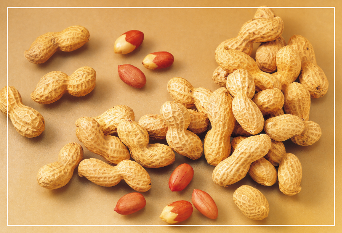 땅콩에는 피로를 회복하고 기력을 보충해주는 비타민B, 비타민B2, 단백질이 풍부하게 함유되어 있어요. 땅콩의 비타민E 함량은 견과류 중에서도 아보카도의 3배나 되기 때문에 회춘 비타민으로 불린답니다.