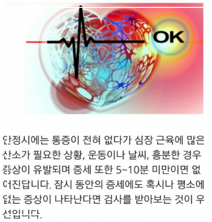 스트레스 상황이 끝나면 증상이 사라지는 것도 협심증의 특징적인 모습이니 기억해두시면 좋겠어요.