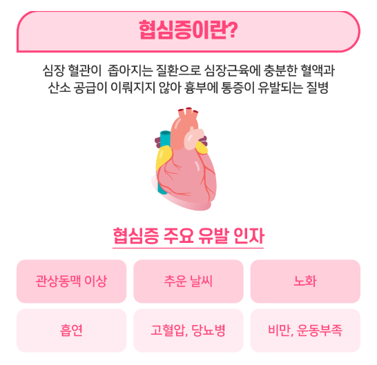 정상체중을 유지하고 스트레스를 잘 해소하는 것도 협심증 예방의 지름길이니 꼭 기억해주세요!