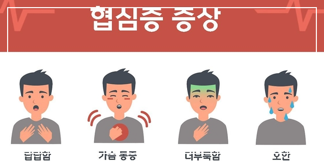 이런 증상은 반드시 아픈 통증이 아니라 죄는 듯한 느낌으로 나타나기 때문에 처음에는 소화불량이나 다른 질환으로 착각하기 쉬워요. 특히 가슴 앞쪽을 쥐어짜는 듯한 통증이 수 분간 지속된다면 협심증일 가능성이 높답니다.