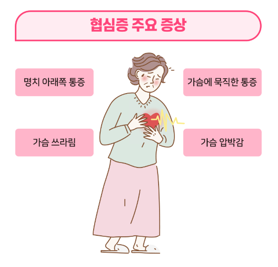 이런 증상은 반드시 아픈 통증이 아니라 죄는 듯한 느낌으로 나타나기 때문에 처음에는 소화불량이나 다른 질환으로 착각하기 쉬워요. 특히 가슴 앞쪽을 쥐어짜는 듯한 통증이 수 분간 지속된다면 협심증일 가능성이 높답니다.