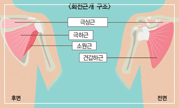 통증 때문에 움직임을 피하게 되면서 점차 관절이 굳어지고, 이것이 다시 운동 범위를 더욱 제한하는 악순환이 생기기도 해요. 오십견과 달리 회전근개파열은 스스로 움직이는 능동적 운동은 제한되지만, 다른 사람이 도와주는 수동적 운동은 비교적 가능한 경우가 많다는 점이 특징이에요.