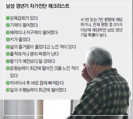 갑자기 예전과 달리 우울하고 불안한 감정이 지속된다면, 단순히 스트레스 때문이라고 넘기지 마시고 남성 갱년기를 의심해보셔야 해요.
