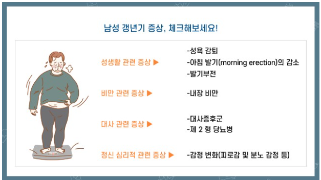 남성 갱년기 증상에 대해 자세하게 알아보겠습니다. 흔히 갱년기는 여성들만의 문제라고 생각하기 쉽지만, 사실 남성분들도 나이가 들면서 호르몬 변화를 겪으면서 다양한 증상들을 경험하게 되세요.