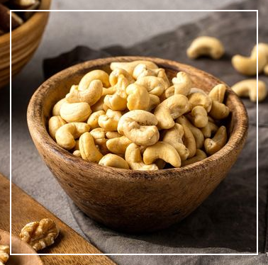캐슈넛에 풍부한 단백질과 식이섬유는 포만감을 오래 유지시켜주고 배고픔을 줄여주기 때문에 전반적인 식사량을 자연스럽게 줄일 수 있어요.